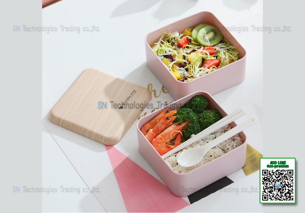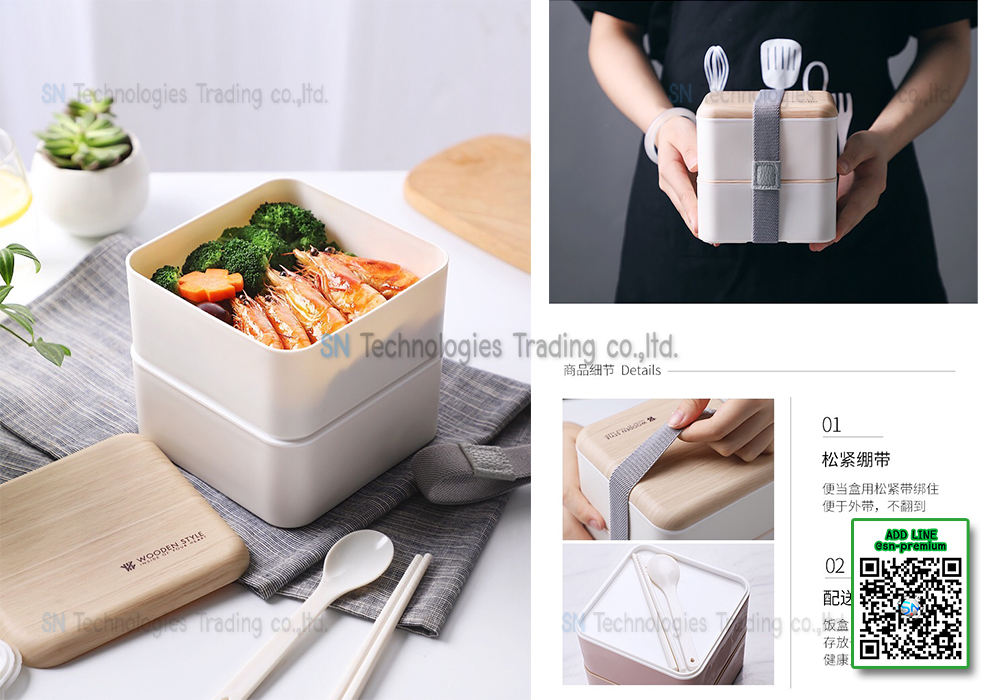 กล่องอาหารกลางวัน สแควร์ double-layerไม้ กล่องอาหารกลางวันช้อนตะเกียบบนโต๊ะอาหาร INS สไตล์นอร์ดิกกล่องอาหารกลางวัน office worker/นักเรียน สะดวกกล่องอาหารกลางวัน